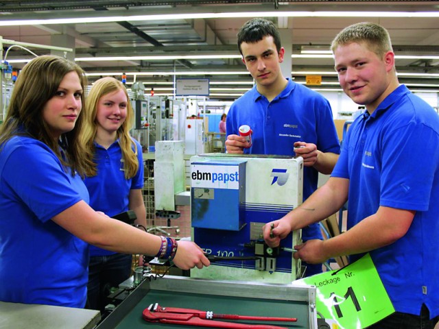Im Rahmen der unternehmenseigenen Klimaschutzkampagne „GreenTech“ entstand bei ebm-papst die Idee, Auszubildende für das Thema Energieeinsparung zu sensibilisieren. Dies geschieht, indem sie als Energiescouts im Unternehmen unterwegs sind und nach Energieeinsparpotenzial suchen. Die Azubis werden mit hochsensiblen Geräten wie Druckluftmessgerät und Wärmebildkamera ausgestattet und durch Ausbilder und den Umweltbeauftragten von ebm-papst geschult. Ihre Aufgabe ist es, Energiefresser im Unternehmen aufzuspüren und zu entschärfen. Durch ihren Einsatz konnten im ersten Jahr rund 100.000 Euro eingespart werden. Lesen Sie hier, wie sich das Projekt seit der Auszeichnung entwickelt hat.