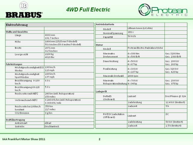 Elektrische Radnabenmotoren sind ein innovatives Antriebskonzept für Elektrofahrzeuge der Zukunft. Um zu zeigen, dass man auch mit Fahrzeugen der Oberklasse zukünftig emissionsfrei und dennoch gewohnt dynamisch unterwegs sein kann, hat die Firma Brabus zwei Modelle der Mercedes E-Klasse mit solchen Motoren ausgestattet. Durch die positiven Ergebnisse und das seriennahe Fahrverhalten, das Brabus belegen konnte, werden sowohl Hersteller als auch Endverbraucher hochklassiger Limousinen auf eine komfortable Version der Elektromobilität aufmerksam gemacht. Brabus erweitert damit die Palette der möglichen Elektrofahrzeuge um eine innovative Variante.