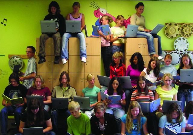 Die Klassenzimmer voller Notebooks: In Niedersachsen lernen und arbeiten gegenwärtig über 3.000 Schüler und Schülerinnen mit eigenen Laptop-Computern. Zur Arbeit an Texten braucht man zwar zuerst seinen Kopf, man muss aber auch den Zugriff auf Informationen haben, Texte verändern, zusammenfassen und präsentieren können. Unter der Leitidee „Qualifizieren für die Wissensgesellschaft“ unterstützt der Verein „n-21: Schulen in Niedersachsen“ regionale Schulen bei der Einführung eines durch Internet und Multimedia gestützten, problemorientierten und selbstgesteuerten Lernens. Seit Ende 2002 führt n-21 das Projekt „1000mal1000: Notebooks im Schulranzen“ durch. Ziel ist es, Jugendliche durch den Umgang mit Computern besser auf die Anforderungen der Wissensgesellschaft, ein lebenslanges Lernen und nicht nur Baller-Spiele vorzubereiten. Die Kosten für die Anschaffung der Notebooks werden auf die Schultern von Eltern, Schulen und Förderern aus der Wirtschaft verteilt.